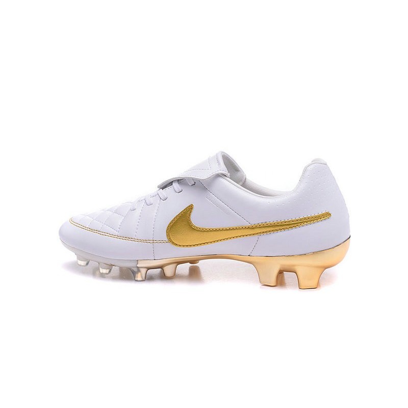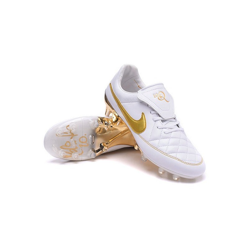 Scarpe Calcio Tiempo Legend V FG Nike Uomo R10 Bianco Oro
